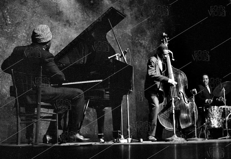 Monk répond par éclat. Les phalanges de sa main droite s’étirent puis s’aplatissent sous la poussée du corps entier. Elles évoluent par bons de cabris sur coteaux abrupts. Sa main gauche génère un épais tapis d’accords ou comble les levées au doigt par un travail d’orfèvre sans plan établi, elle fouille, chevauche, expérimente l’harmonie, cherche la ligne mélodique, l’épouse, la repousse, se tait...